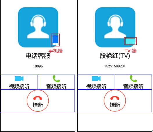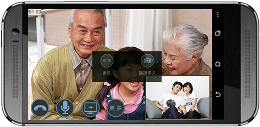 手机端绑定TV端后,视频通话过程中可将画面切换至TV端电视上,这也是我公司的独有技术,具有转换快速、画面清晰的特点。