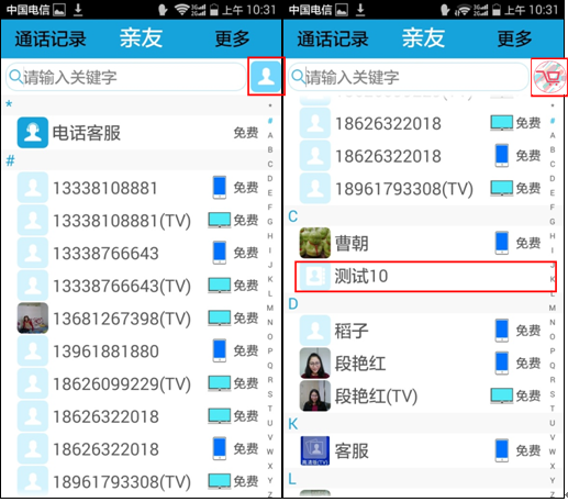 【亲友】界面在新版本中做了优化设计:将自动导入手机通讯录,并可以快速切换查看。