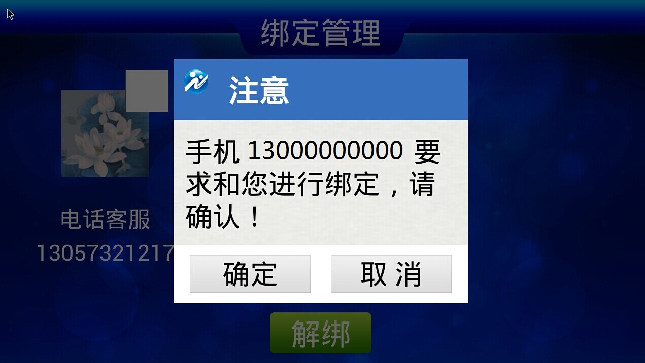 系统默认绑定同一手机号码注册激活的手机端和TV端,如要绑定其他TV端,可浏览